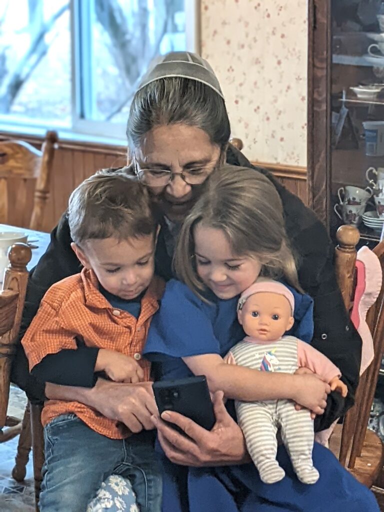 Here are both children with Grandma Rose: