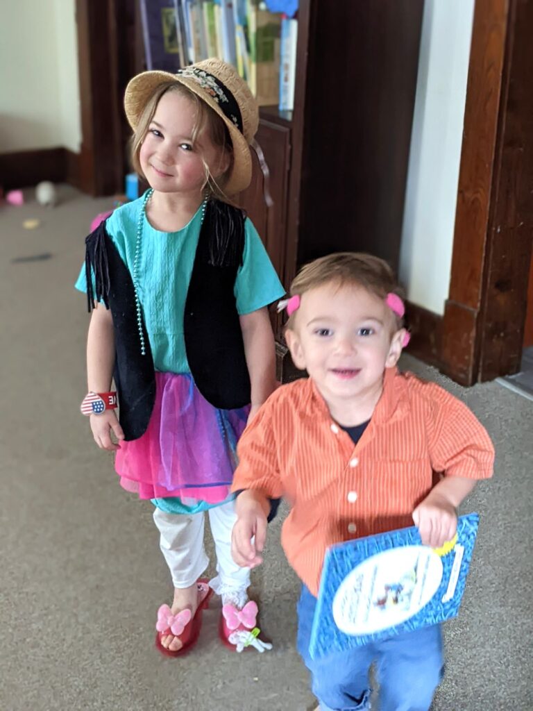 And another of both children dressed up (Teddy has on a bunny rabbit headband which you can’t see properly in the picture since he put it on himself, on the back of his head).